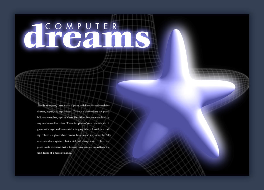 Inside everyone, there exists a place which stores and cherishes dreams, hopes, and aspirations. There is a place where the possibilities are endless, a place where ideas flow freely not confined by any medium or limitation. There is a place of such potential that it glows with hope and burns with a longing to be released into reality. There is a place which cannot be seen and may never be fully understood or explained but which will always exist. There is a place inside everyone that is beyond mere wishes, but reflects the true desire of a person's nature.