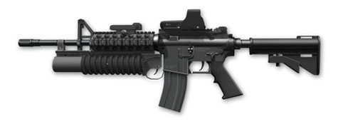 M4A1 Carbine The M4A1 5.56 mm Carbine is a gas-operated, air-cooled, magazine-fed, selective fire weapon with a telescoping stock. A shortened variant of the M16A2 rifle with a 36 cm barrel, the M4 provides soldiers operating in close quarters the capability to engage targets at extended range. ATTACHMENTS: M203 GRENADE LAUNCHER, FRONT GRIP, SILENCER OPTICS: SHORTDOT, AIMPOINT, ACOG, EOTECH |