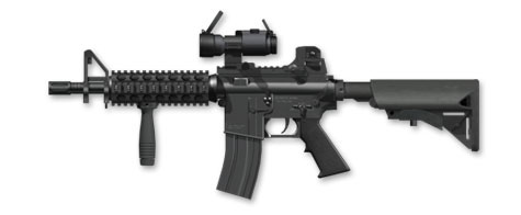 ![]() Mk18 CQBR The Close Quarters Battle Receiver (CQBR) is a replacement upper receiver for the M4A1 Carbine. The CQBR upgrades the M4 with a barrel 10.3 in (260 mm) long, the modern equivalent of the Colt Commando short-barrel M16 variants of the past. ATTACHMENTS: FRONT GRIP, SILENCER OPTICS: AIMPOINT, EOTECH |