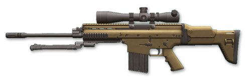 ![]() SCAR H Marksman Variant The Scar-H fires the more powerful 7.62x51mm NATO from a newly designed 20-round magazine (this full-sized cartridge makes the SCAR-H a battle rifle) This variant features the long barrel for extended range enagements. ATTACHMENTS: SILENCER, BIPOD OPTICS: LEUPOLD IV SCOPE |